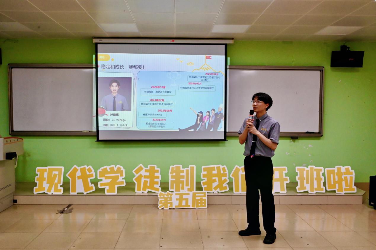 從第二屆訂單班成長(zhǎng)起來的葉建樂學(xué)長(zhǎng),如今已成長(zhǎng)為一名顧客體驗(yàn)經(jīng)理,獨(dú)立負(fù)責(zé)一家餐廳的所有業(yè)務(wù)。他熱情分享道:“在訂單班的學(xué)習(xí)與實(shí)踐,讓我快速掌握了市場(chǎng)營(yíng)銷與餐廳運(yùn)營(yíng)的核心技能。只要大家保持學(xué)習(xí)熱情,勇于挑戰(zhàn)自我,都能在麥當(dāng)勞收獲屬于自己的精彩!”