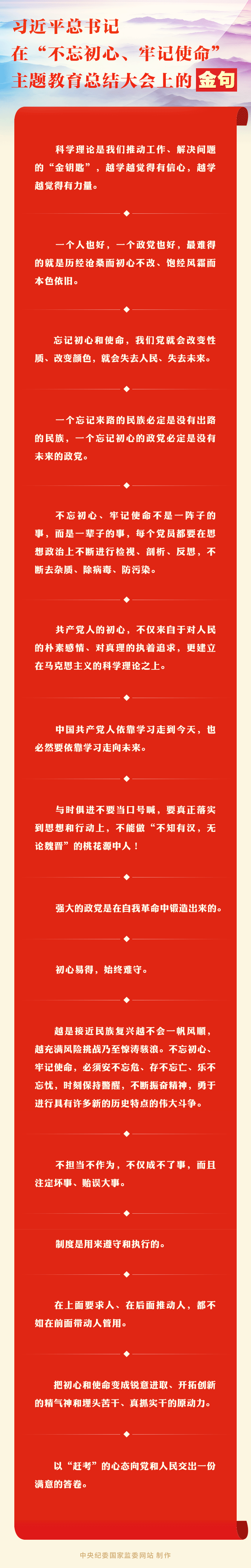 習(xí)近平總書記在"不忘初心、牢記使命" 主題教育總結(jié)大會(huì)上的金句