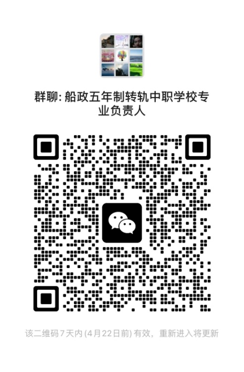 請(qǐng)各合作中職學(xué)校負(fù)責(zé)機(jī)房安裝的技術(shù)老師4月22日前加入微信群“船政五年制轉(zhuǎn)軌考核技術(shù)群”(圖一),各合作中職學(xué)校專業(yè)負(fù)責(zé)人4月19日前加入微信群“船政五年制轉(zhuǎn)軌中職學(xué)校專業(yè)負(fù)責(zé)人群”(圖二)。