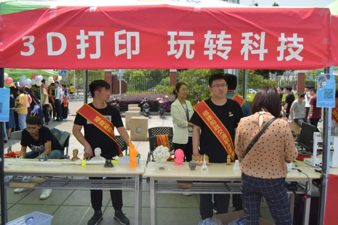 在學(xué)院本部活動(dòng)現(xiàn)場(chǎng),胡星曄、程艷、楊開懷三位老師帶領(lǐng)同學(xué)們向大家生動(dòng)展示了3D打印新技術(shù)及打印產(chǎn)品模型,簡(jiǎn)要介紹了3D打印技術(shù)的原理及應(yīng)用范圍。3D打印是一種以數(shù)字模型文件為基礎(chǔ)的快速成型技術(shù),3D打印機(jī)內(nèi)裝有金屬、陶瓷、塑料、砂等不同的“打印材料”,與電腦連接后,通過(guò)電腦控制把“打印材料”一層層疊加起來(lái),最終把計(jì)算機(jī)上的藍(lán)圖變成實(shí)物。目前3D打印技術(shù)已廣泛應(yīng)用于軍工、工業(yè)和民生領(lǐng)域。老師同學(xué)們生動(dòng)形象的解說(shuō)、動(dòng)態(tài)的打印過(guò)程、美麗生動(dòng)的產(chǎn)品模型,吸引了廣大教師、群眾、學(xué)生和小朋友駐足觀看,現(xiàn)場(chǎng)還進(jìn)行了有獎(jiǎng)問(wèn)答,并將打印的成品模型贈(zèng)送給現(xiàn)場(chǎng)觀眾。除此之外,系機(jī)器人協(xié)會(huì)的同學(xué)們還現(xiàn)場(chǎng)演示了機(jī)器人對(duì)抗小車和巡線智能機(jī)器人小車,向現(xiàn)場(chǎng)觀眾普及了機(jī)器人基本知識(shí)、基本原理和操作方法。