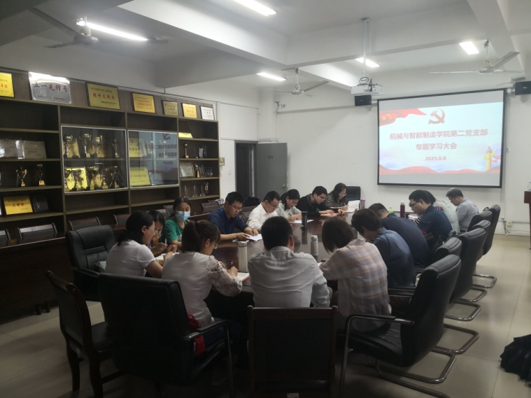 2021年5月8日機(jī)械與智能制造學(xué)院第二黨支部召開(kāi)專題學(xué)習(xí)大會(huì),組織學(xué)習(xí)《習(xí)近平在清華大學(xué)考察時(shí)強(qiáng)調(diào)堅(jiān)持中國(guó)特色世界一流大學(xué)建設(shè)目標(biāo)方向?yàn)榉?wù)國(guó)家富強(qiáng)民族復(fù)興人民幸福貢獻(xiàn)力量》、《習(xí)近平致信祝賀廈門大學(xué)建校100周年》、《中國(guó)共產(chǎn)黨普通高等學(xué)?;鶎咏M織工作條例》、《中國(guó)共產(chǎn)黨黨員教育管理工作條例》、《中國(guó)共產(chǎn)黨支部工作條例(試行)》等文件精神。