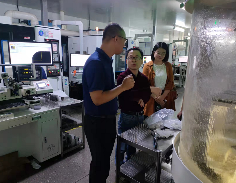 學(xué)院一行先后參觀了企業(yè)產(chǎn)品研發(fā)室、生產(chǎn)車間、設(shè)備生產(chǎn)組裝車間等,并同企業(yè)代表開展座談交流。會上,校企雙方圍繞開拓就業(yè)渠道和就業(yè)崗位、開展企業(yè)人才需求調(diào)查等方面展開交流,并期望校企雙方能夠加強科學(xué)研究、人才培養(yǎng)、學(xué)術(shù)交流和教學(xué)實踐等方面的合作,取得互利共贏的豐碩成果。