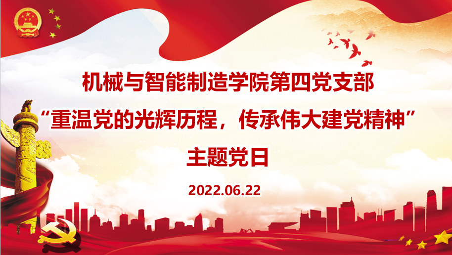2022年06月22日,機(jī)械與智能制造學(xué)院第四黨支部在26#209召開以“重溫黨的光輝歷程,傳承偉大建黨精神”為主題的支部黨日活動,黨支部書記王水發(fā)同志帶領(lǐng)大家共同學(xué)習(xí)領(lǐng)悟。