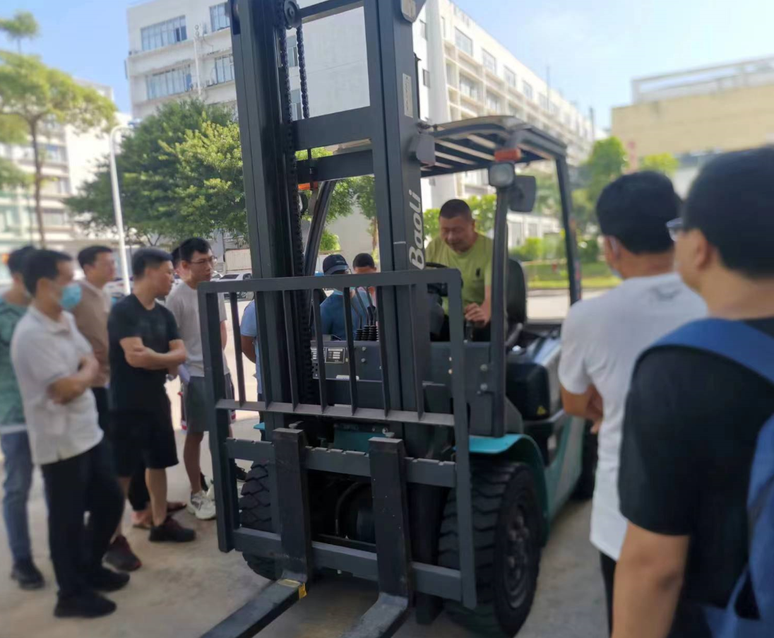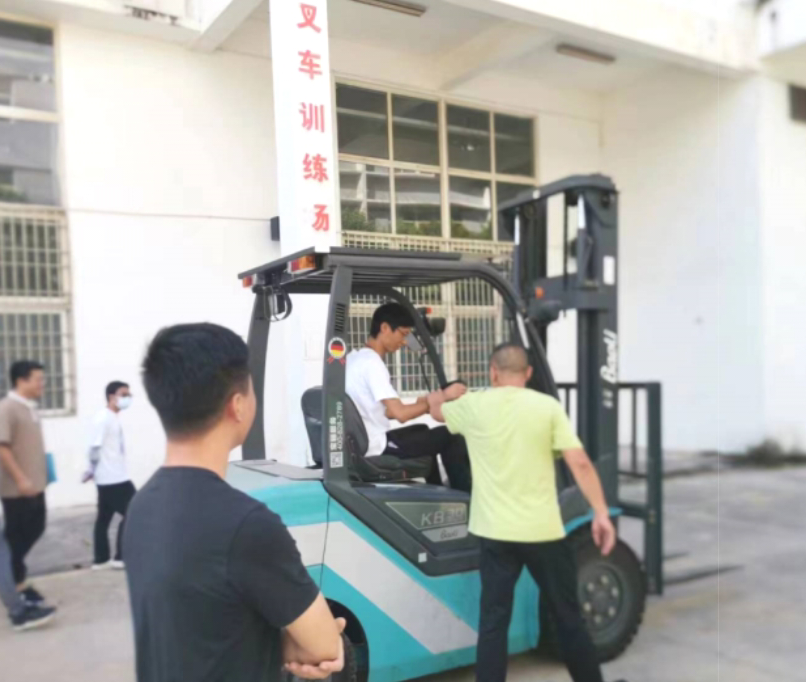 在實操環(huán)節(jié),教師又對叉車零部件、操作流程等進行了詳細介紹,并親自演示叉車的基本駕駛,讓學員們直觀地理解叉車的駕駛原理。之后,再由學員們逐一上場實操,教師一對一認真指導,不僅緩解了學員初次駕駛的緊張情緒,也讓學員能迅速進入到操作的狀態(tài)中。