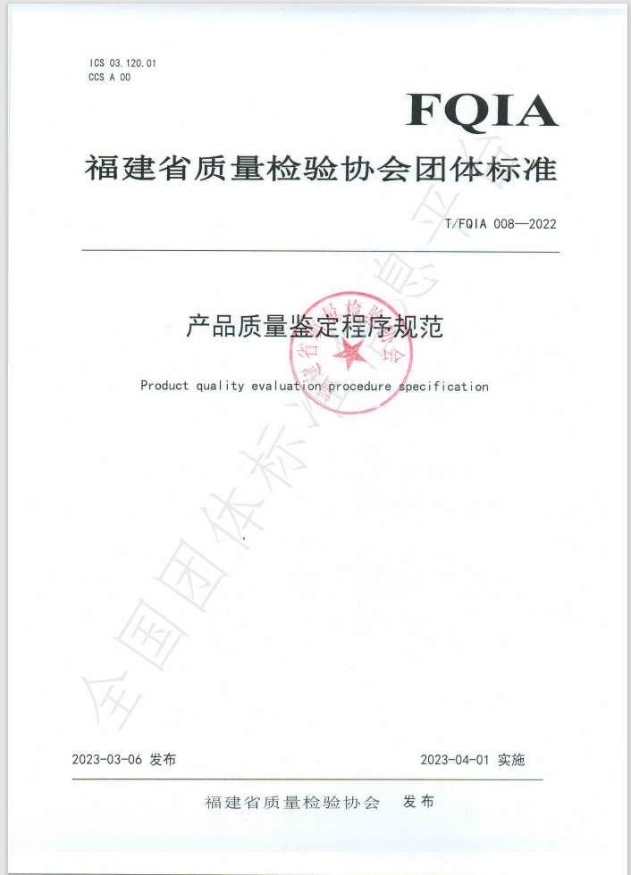 近日,由我院省級技能大師工作室領(lǐng)辦人鄒澤昌副教授作為主要起草人編制的團(tuán)體標(biāo)準(zhǔn)《產(chǎn)品質(zhì)量鑒定程序規(guī)范》(T/FQIA 008—2022)獲福建省質(zhì)量檢驗協(xié)會批準(zhǔn)發(fā)布,將于2023年4月1日實施。
