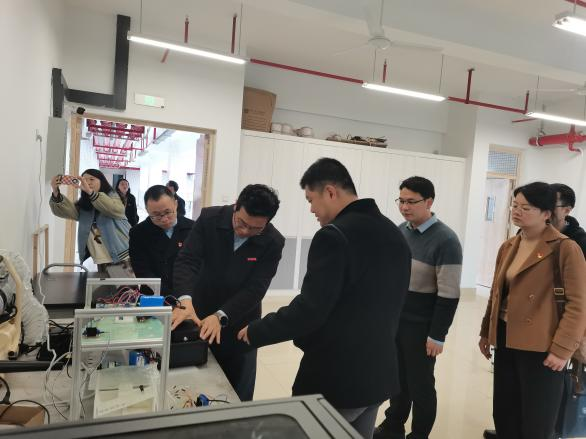 最后,一行人參觀(guān)了旗山校區(qū)工訓(xùn)樓實(shí)驗(yàn)室,并重點(diǎn)對(duì)實(shí)驗(yàn)室管理難點(diǎn),實(shí)驗(yàn)教學(xué)指導(dǎo)書(shū)、實(shí)訓(xùn)設(shè)備利用率等方面進(jìn)行技術(shù)交流和分析,對(duì)提升機(jī)械學(xué)院實(shí)驗(yàn)室建設(shè)及實(shí)踐教學(xué)起到了有效的幫助和推動(dòng),為未來(lái)培養(yǎng)更高水平高素質(zhì)技術(shù)技能人才奠定了基礎(chǔ)。