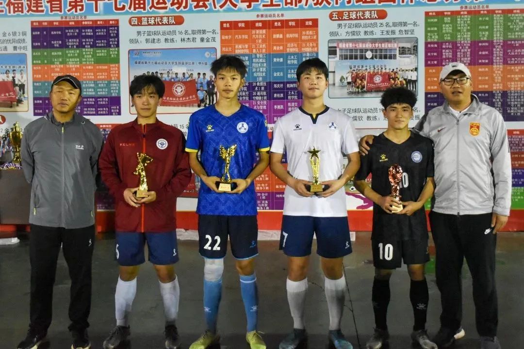 最終將比分維持至全場比賽結(jié)束,機械與智能制造學(xué)院足球隊獲得本次福建船政交通職業(yè)學(xué)院第十五屆體育節(jié)足球比賽冠軍!球員分別獲得最佳教練、最佳守門員、最佳球員等多項榮譽。