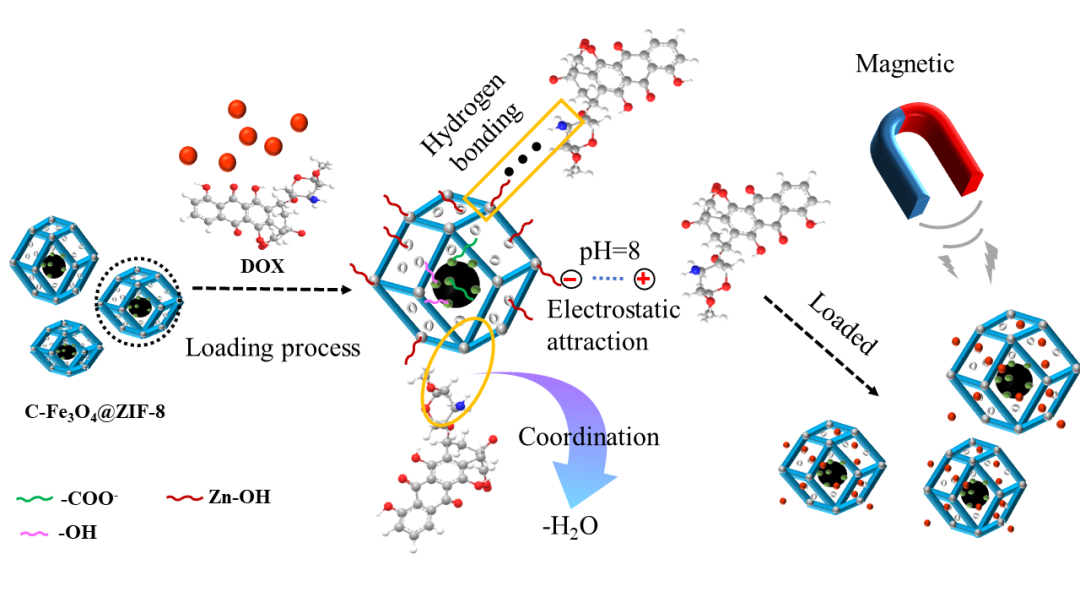 Fig. 2 The proposed mechanism of DOX loading on C-Fe3O4@ZIF-8 nanoparticles.