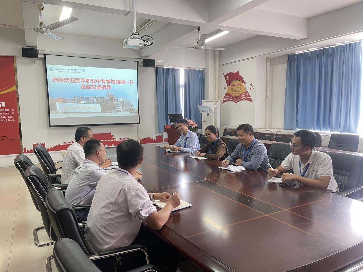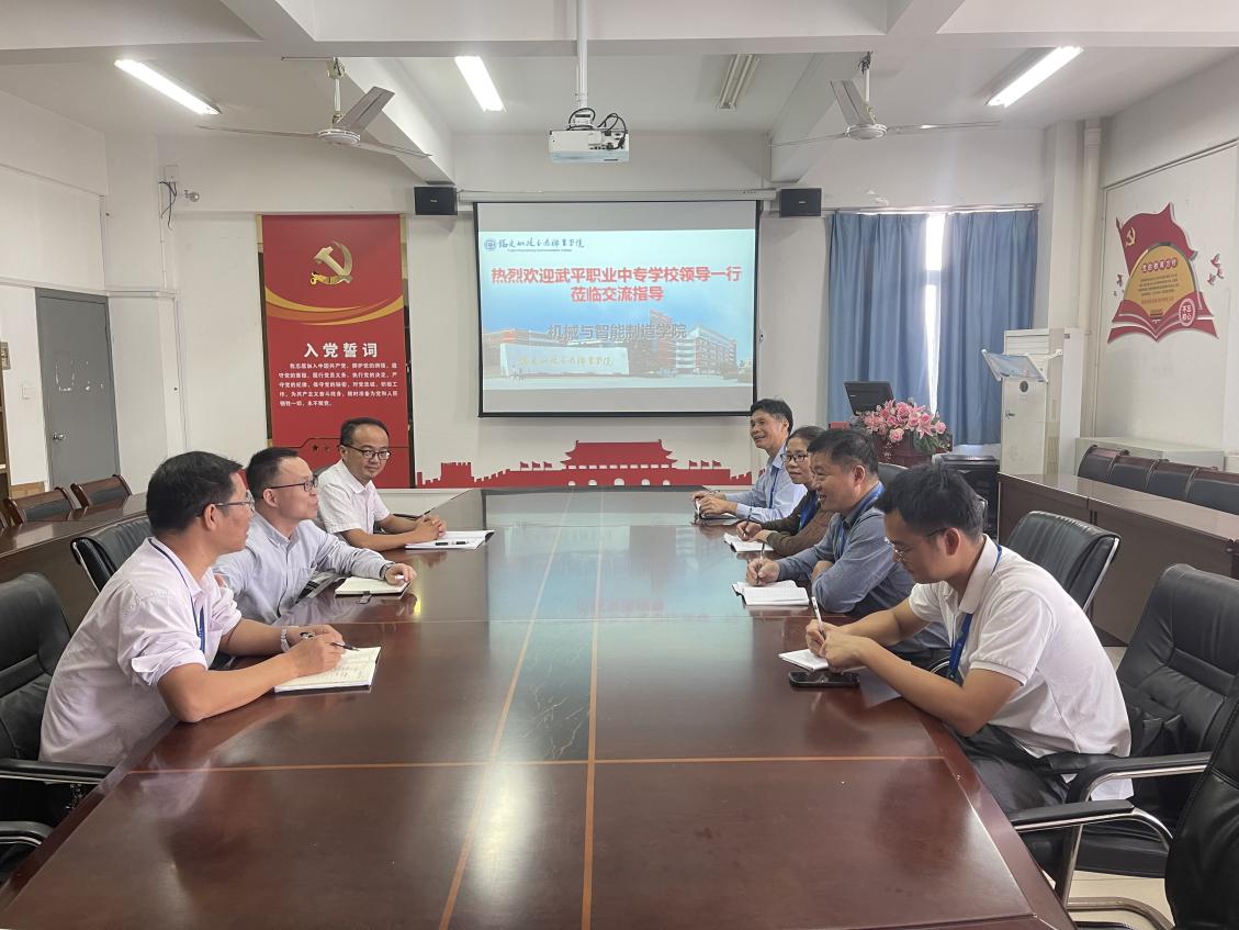 2023年11月8日,武平職業(yè)中專學(xué)校鐘副校長(zhǎng)等一行四人來(lái)我院開展交流指導(dǎo)活動(dòng)。交流會(huì)上,楊開懷院長(zhǎng)對(duì)武平職業(yè)中專學(xué)校領(lǐng)導(dǎo)一行的到來(lái)表示熱烈歡迎,并簡(jiǎn)要介紹了學(xué)院的基本情況,概述了目前學(xué)院現(xiàn)有的教學(xué)設(shè)備,實(shí)驗(yàn)室建設(shè)情況。我院副院長(zhǎng)陳貴清也對(duì)武平中專職業(yè)學(xué)校一行人表示熱情歡迎,同時(shí)希望在后續(xù)的校校合作中,取得更進(jìn)一步的成效。
