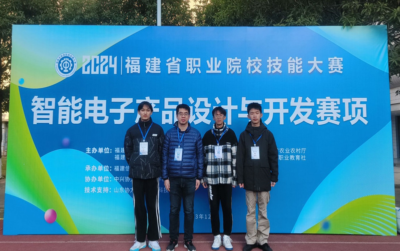 2023年12月23日,福建省職業(yè)院校技能大賽“智能電子產(chǎn)品設(shè)計(jì)與開發(fā)”賽項(xiàng)在福建信息職業(yè)技術(shù)學(xué)院舉行,來(lái)自全省九地市26支代表隊(duì)參賽。經(jīng)過(guò)緊張激烈的比賽,我院林恒青老師、鄭君輝、湯曹榕、余運(yùn)奇同學(xué)獲得團(tuán)體賽三等獎(jiǎng)。