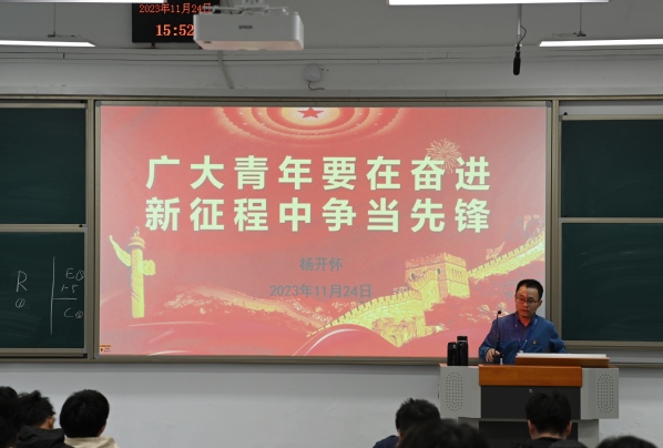 11月24日下午,楊開懷院長(zhǎng)以廣大青年要在奮進(jìn)新征程中爭(zhēng)當(dāng)先鋒為題,通過政治、精神、格局、利益、行動(dòng)等方面來告訴各入黨積極分子應(yīng)爭(zhēng)做一個(gè)怎樣的青年以及在爭(zhēng)做這樣一個(gè)青年的基礎(chǔ)上應(yīng)該怎么做。