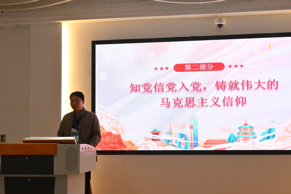 11月23日下午,黨總支副書記肖秀林以《讓信仰點(diǎn)亮人生,爭(zhēng)做時(shí)代接班人》這一主題,圍繞認(rèn)識(shí)馬克思主義政黨、知黨信黨入黨,鑄就偉大的馬克思主義信仰以及學(xué)習(xí)入黨知識(shí),積極向黨靠攏,爭(zhēng)做新時(shí)代接班人這三大主題展開對(duì)入黨積極分子的詳細(xì)解讀。
