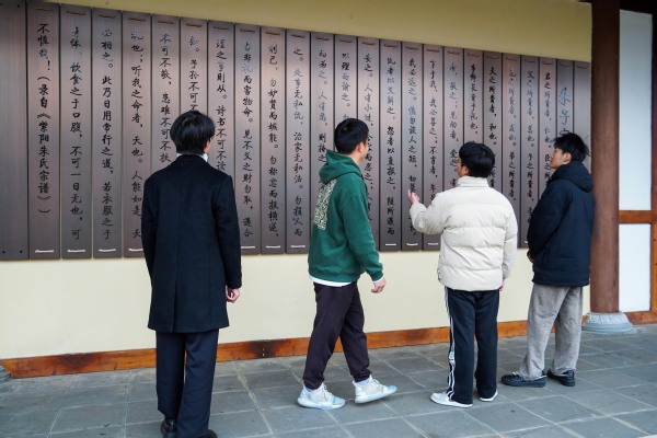 穿過道原堂,在道原堂背后的墻上,印著一面書簡(jiǎn)造型的《朱子家訓(xùn)》,吸引隊(duì)員們駐足觀看,細(xì)細(xì)品味朱子治家、做人思想的濃縮?!吨熳蛹矣?xùn)》精辟闡明了修身立德治家之道。其中,許多內(nèi)容蘊(yùn)含著中國傳統(tǒng)文化的優(yōu)秀特點(diǎn)。