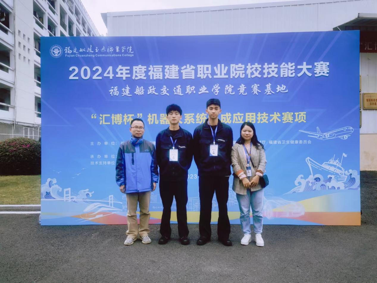 2023年12月8日--12月10日,來自全省18所高職院校的18支代表隊齊聚福建船政交通職業(yè)學院參加2024年福建省職業(yè)院校技能大賽(高職組)機器人系統(tǒng)集成應用技術賽項的比賽。經(jīng)過兩天緊張激烈的比賽,支部黨員楊開懷、童曉薇兩位老師指導的陳育凱、陳世衛(wèi)同學獲得一等獎。