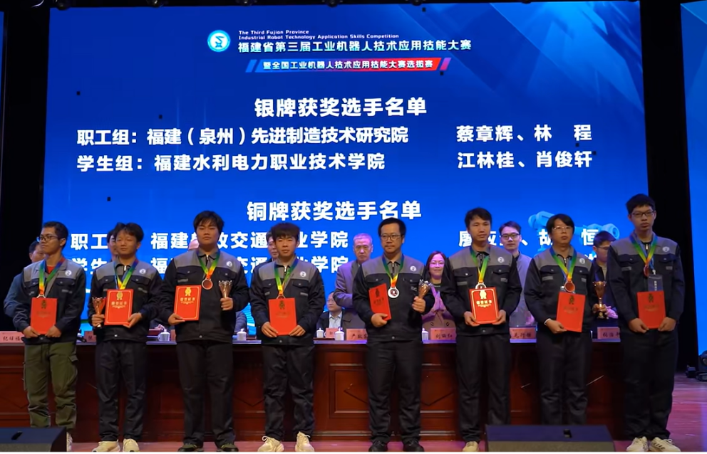 2023年12月2日-12月16日,福建省第三屆工業(yè)機器人技術(shù)應(yīng)用技能大賽暨全國工業(yè)機器人技術(shù)應(yīng)用技能大賽選拔賽在福建水利電力職業(yè)技術(shù)學(xué)院開賽。來自全省各地25家制造業(yè)企業(yè)、17所本科院校、60所職業(yè)院校、15所技工院校的234名職工和學(xué)生,共117支隊伍報名參賽,其中,職工組55隊、學(xué)生組62隊。經(jīng)過選手們激烈角逐,我院學(xué)生江志鵬、曾文焱獲學(xué)生組銅獎,支部老師胡恒和廖應(yīng)生兩位老師獲職工組銅獎。
