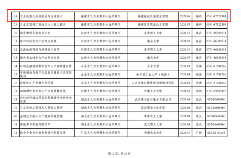 近日,人力資源和社會保障部發(fā)布“人力資源社會保障部辦公廳關(guān)于印發(fā)專業(yè)技術(shù)人才知識更新工程2024年高級研修項(xiàng)目計(jì)劃的通知”(人社廳函〔2024〕34號),機(jī)械與智能制造學(xué)院組織申報(bào)的《工業(yè)機(jī)器人系統(tǒng)集成與運(yùn)維技術(shù)》項(xiàng)目成功入選。