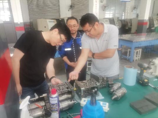 近日,國家級技能大師工作室領(lǐng)辦人張榕賓老師蒞臨我校,作為校聘技能大師,長期從事數(shù)控技術(shù)研究和實踐,具有豐富的經(jīng)驗,協(xié)助指導我院參賽項目——復雜部件數(shù)控多軸聯(lián)動加工技術(shù)。