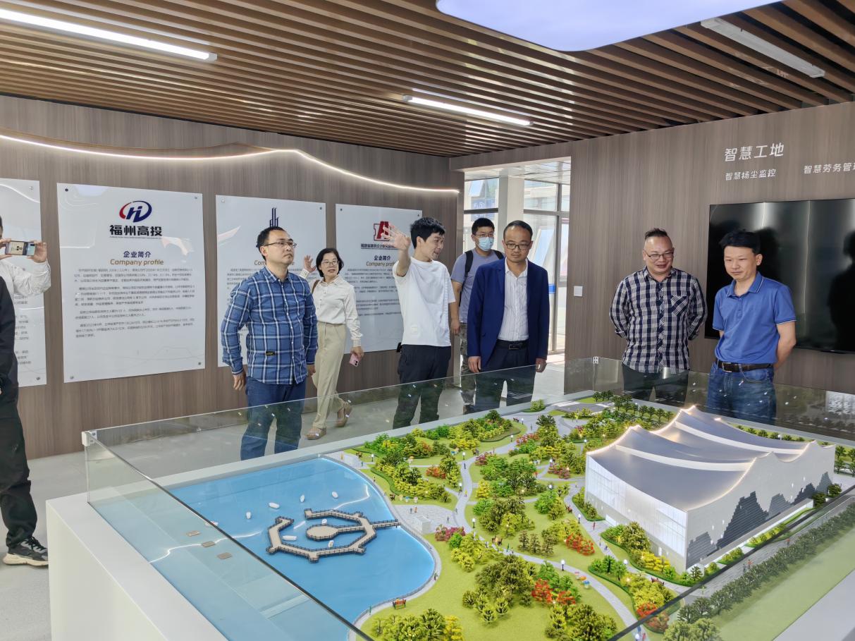我院教師一行實(shí)地參觀了福建美術(shù)館在建現(xiàn)場(chǎng)、項(xiàng)目駐地展廳。“福建美術(shù)館項(xiàng)目以“古厝新韻”為設(shè)計(jì)理念,將古厝的歷史厚重和時(shí)尚藝術(shù)有機(jī)結(jié)合;將成為福州新的地標(biāo)建筑?!笔“补镜捻?xiàng)目經(jīng)理介紹說,“省安將在項(xiàng)目中扮演鋼結(jié)構(gòu)安裝的角色”。各位教師從建設(shè)背景、項(xiàng)目進(jìn)展、空間布局、規(guī)劃定位等多個(gè)方面詳細(xì)了解福建美術(shù)館項(xiàng)目的基本情況。