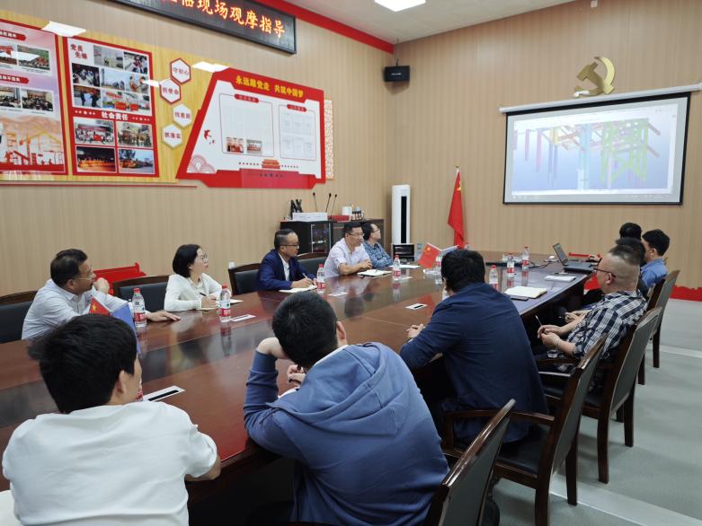 展廳參觀結(jié)束后,雙方在項(xiàng)目會(huì)議室共同交流商討合作事宜。省安公司對(duì)外合作中心趙凱主任表示,項(xiàng)目的安裝工作正在緊密籌劃布置當(dāng)中,在本月底即將正式由土建轉(zhuǎn)安裝,希望機(jī)械學(xué)院能在定位放線、登高作業(yè)、高強(qiáng)螺栓安裝、鋼結(jié)構(gòu)焊接等現(xiàn)場(chǎng)項(xiàng)目中找到技術(shù)突破口,為企業(yè)施工降本增效助力。