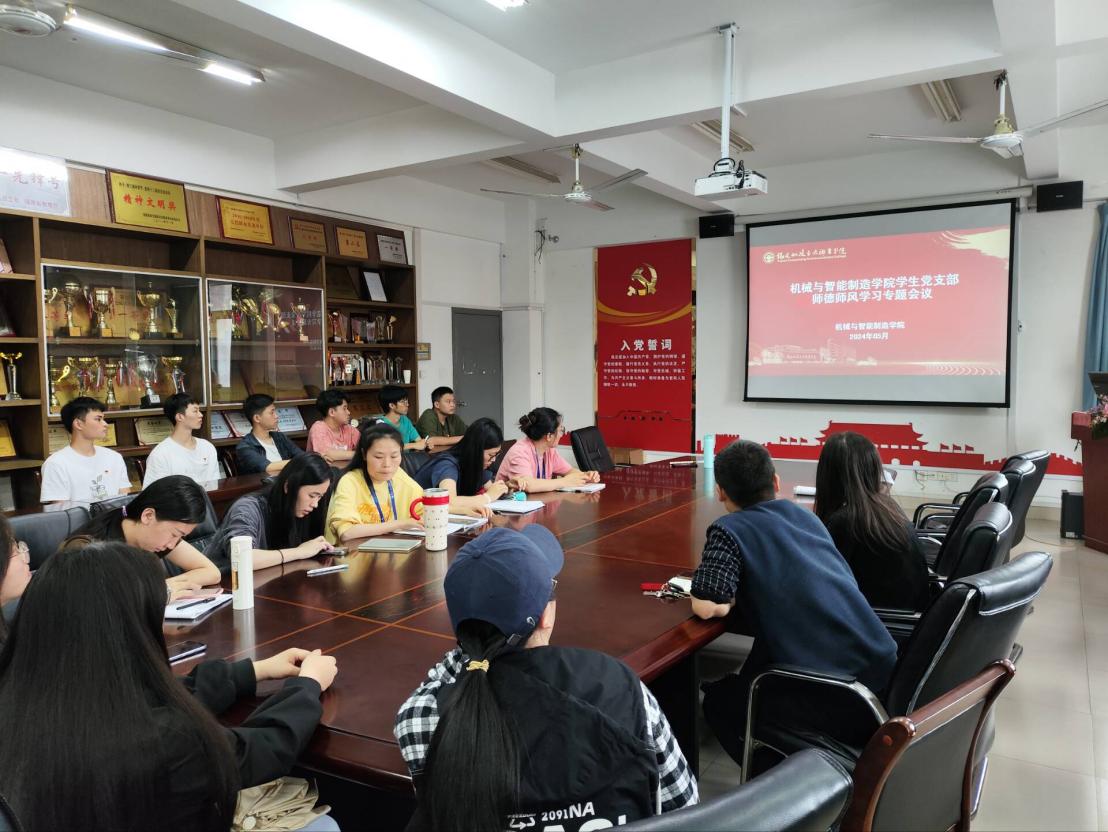 機(jī)械與智能制造學(xué)院學(xué)生黨支部5月24日下午3點(diǎn)40分于福道園26#305會(huì)議室召開(kāi)學(xué)生黨支部師德師風(fēng)專(zhuān)題學(xué)習(xí)。會(huì)議由林娟穎、吳夢(mèng)煒同志主持,由鄭茜和潘哲妍同志領(lǐng)學(xué)。