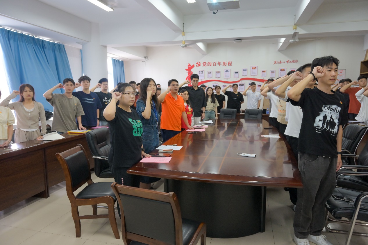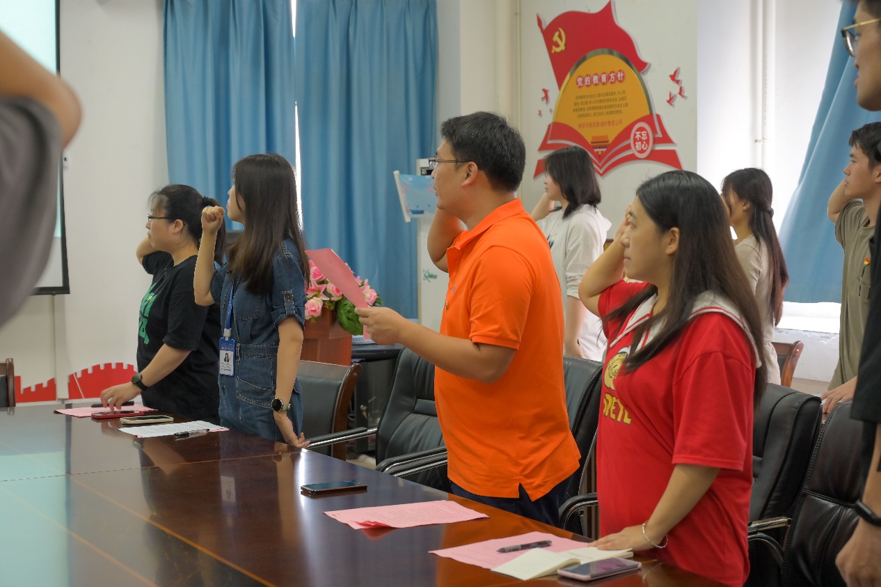 大會(huì)伊始,由黨總支副書(shū)記肖秀林帶領(lǐng)大家面對(duì)黨旗,重溫入黨誓詞。