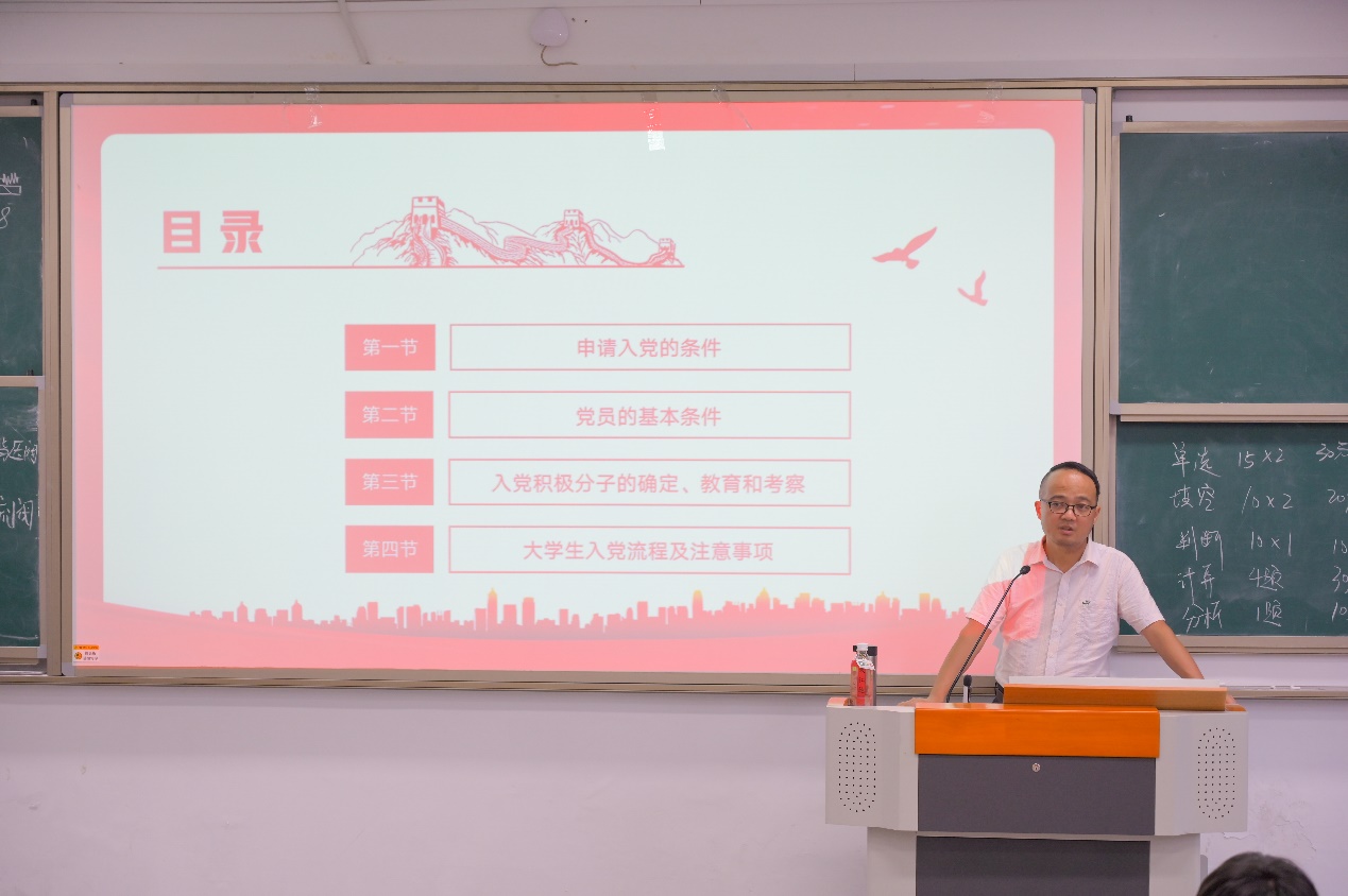 2024年6月19日下午,機械與智能制造學(xué)院副院長陳貴清就《明確入黨條件,積極向黨靠攏》,對入黨積極分子們進行專題培訓(xùn),帶領(lǐng)入黨積極分子們了解申請入黨的條件、黨員的基本條件以及大學(xué)生入黨的流程和注意事項,并為大家說明入黨積極分子是如何確實、教育和考察的。