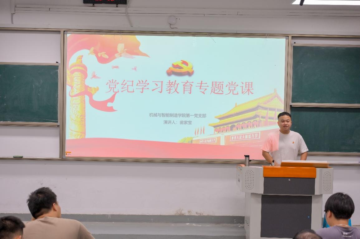 2024年6月20日,機械與智能制造學(xué)院2021級畢業(yè)生黨員翁家寶為機械與智能制造學(xué)院分黨校第八期的每一位入黨積極分子闡述了黨的紀(jì)律的重要性,指出紀(jì)律是黨的生命線,是保證黨的團結(jié)統(tǒng)一和高效運作的基礎(chǔ)。黨的紀(jì)律主要包括政治紀(jì)律、組織紀(jì)律、廉潔紀(jì)律等,這些紀(jì)律的嚴(yán)格執(zhí)行有助于維護黨的純潔性和先進性。
