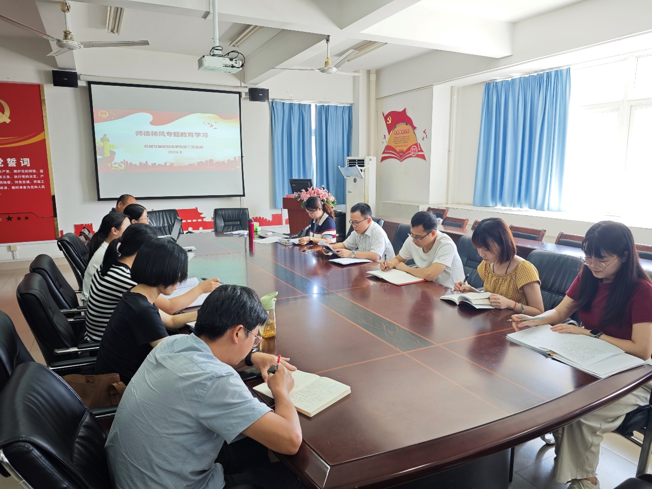 2024年9月19日,機械與智能制造學(xué)院第二黨支部開展師德師風(fēng)學(xué)習(xí)教育活動,組織學(xué)習(xí)《中共中央關(guān)于進一步全面深化改革、推進中國式現(xiàn)代化的決定》、《獻(xiàn)禮第四十個教師節(jié)!跟隨“大先生”領(lǐng)略新時代教育家風(fēng)貌》、《“真正把教育擺在先行官的位置”——習(xí)近平同志在福建工作期間關(guān)于教育工作的探索與實踐》、《中共中央國務(wù)院關(guān)于弘揚教育家精神加強新時代高素質(zhì)專業(yè)化教師隊伍建設(shè)的意見》等文件精神。