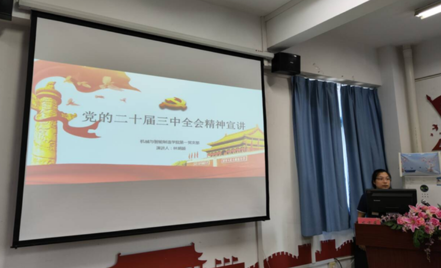 機械與智能制造學院第一黨支部2024年9月13日于福道園26#305會議室學習黨的二十屆三中全會精神。由支部書記林娟穎進行宣講。