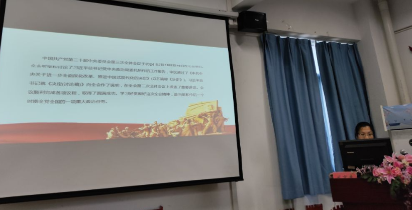 林娟穎老師對黨的二十屆三中全會的重要意義進行了深入闡釋,并全面宣講了習近平總書記在全會上的重要講話精神。她詳細解讀了全面深化改革的重大舉措,并強調(diào)了全會精神貫徹落實的重要性。會議強調(diào),學習宣傳貫徹黨的二十屆三中全會精神是當前和未來一段時間內(nèi)的重大政治任務,必須引導黨員和青年將思想和行動統(tǒng)一到全會精神上,將智慧和力量集中到實現(xiàn)全會確定的目標任務上。