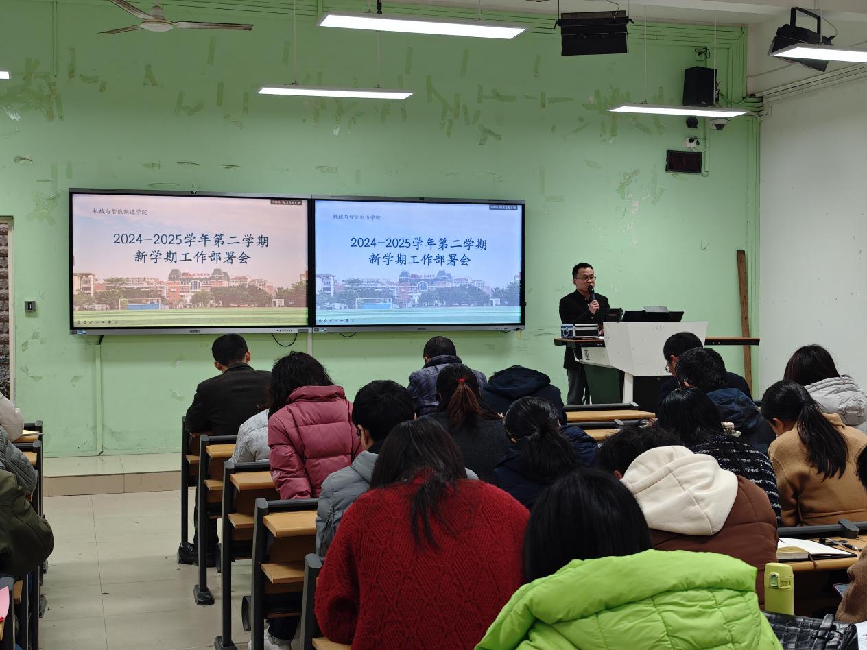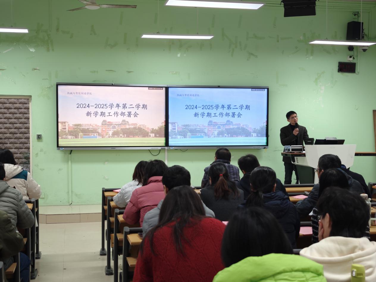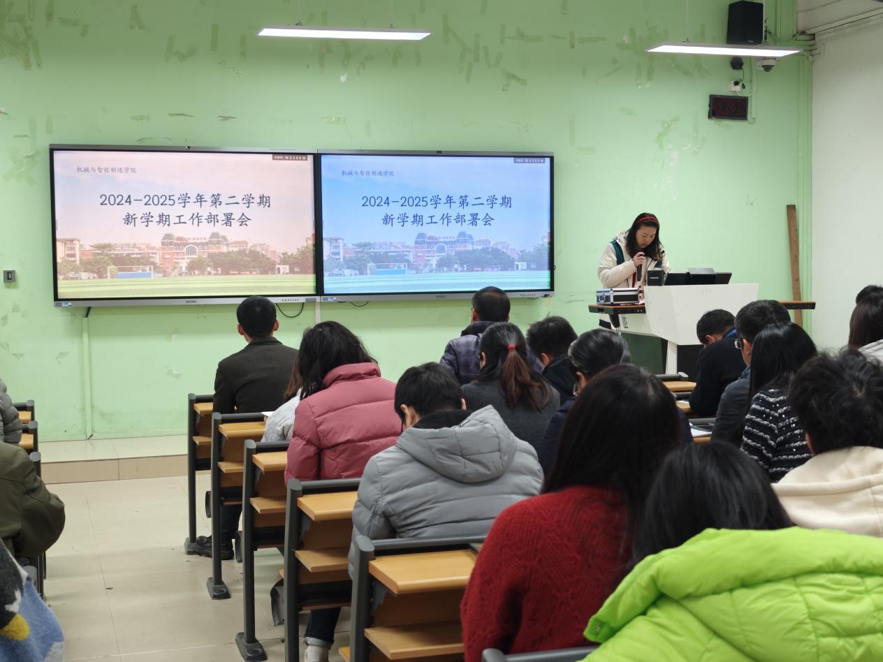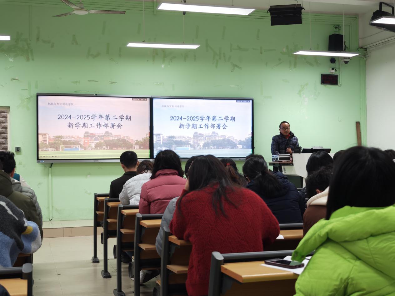 為明確新學(xué)期工作目標(biāo),統(tǒng)籌推進(jìn)各項(xiàng)工作任務(wù),219午,機(jī)械與智能制造學(xué)院2號(hào)樓1-2召開(kāi)2024-2025學(xué)年第二學(xué)期第一次全院大會(huì)暨新學(xué)期工作部署會(huì)。學(xué)院領(lǐng)導(dǎo)班子成員、全體教職工參加了會(huì)議。會(huì)議部署了2024-2025學(xué)年第二學(xué)期開(kāi)學(xué)各項(xiàng)事宜和近期工作重點(diǎn)。