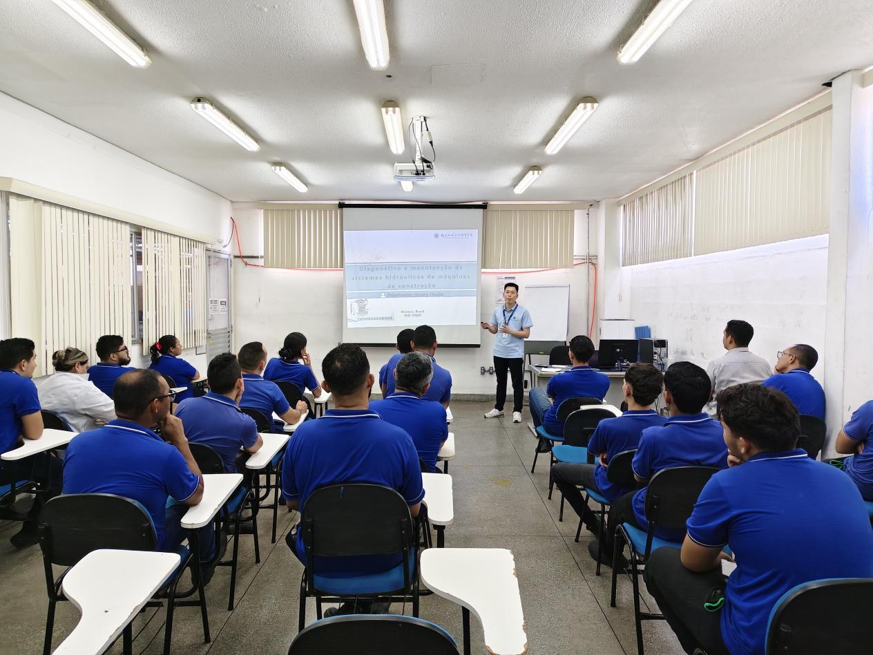 揭牌儀式后,福建船政交通職業(yè)學院教師團隊為巴西基地員工開展為期6天的專業(yè)技能培訓。課程設置液壓驅動系統(tǒng)故障診斷、智能裝備電氣安全操作、工業(yè)機器人操作維護等模塊,采用“理論+實操”雙元教學模式,通過解剖液壓系統(tǒng)、電氣安全操作、電路故障排查維護等實踐訓練,系統(tǒng)提升學員智能制造設備維護核心技能,同時為當?shù)嘏嘤栔行膶嵱柣亟ㄔO提供實地指導。