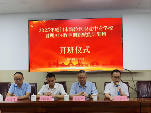 2025年8月2日,我院承辦的廈門市海滄區(qū)職業(yè)中專學(xué)校暑期“AI+教學(xué)創(chuàng)新賦能計(jì)劃班”在廈門市委黨校高山教學(xué)點(diǎn)正式開班。廈門市海滄區(qū)職業(yè)中專學(xué)校副校長謝文輝,福建船政交通職業(yè)學(xué)院機(jī)械與智能制造學(xué)院院長楊開懷、副院長陳貴清,廈門市委黨校高山教學(xué)點(diǎn)負(fù)責(zé)人蘇銀坂等出席開班式。