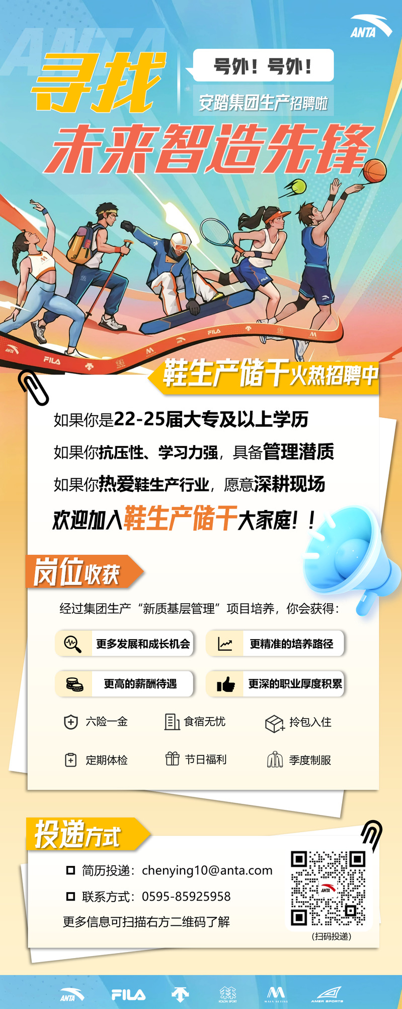安踏集團(tuán)創(chuàng)立于1991年,2007年在中國香港上市,是一家專門從事設(shè)計(jì)、生產(chǎn)、銷售運(yùn)動鞋服、配飾等運(yùn)動裝備的綜合性、多品牌的體育用品集團(tuán)。截止2023年底,集團(tuán)員工總數(shù)超6萬名,其中新吸納了超25000名高校畢業(yè)生及35歲以下年輕人才,間接創(chuàng)造超20萬個(gè)就業(yè)崗位。安踏集團(tuán)堅(jiān)持"單聚焦、多品牌、全球化”的發(fā)展戰(zhàn)略,旗下?lián)碛邪蔡?/span>ANTA(中國)、斐樂FILA(意大利)、迪桑特DESCENTE(日本)、可隆體育KOLON SPORT(韓國)等多個(gè)知名的運(yùn)動品牌,全面滿足消費(fèi)者的多元化需求。