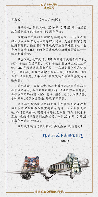 福建船政交通職業(yè)學(xué)院辦學(xué)150周年紀(jì)念活動邀請函