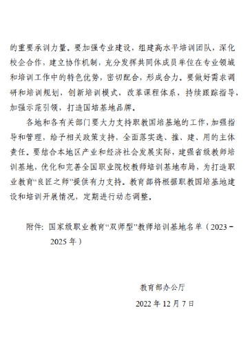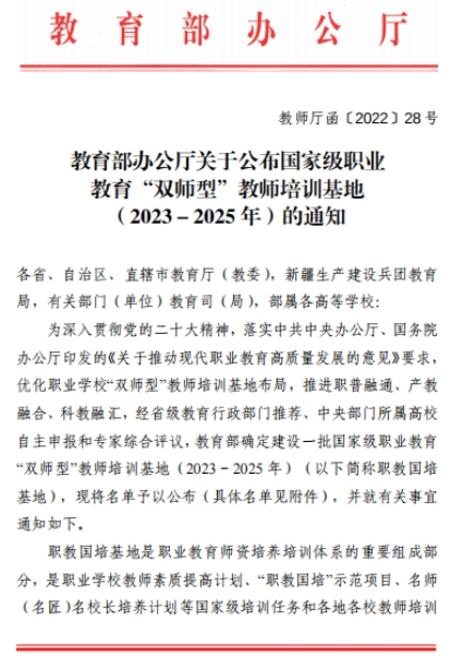12月7日,教育部辦公廳公布國(guó)家級(jí)職業(yè)教育“雙師型”教師培訓(xùn)基地名單(2023-2025年),我校申報(bào)的交通運(yùn)輸大類道路運(yùn)輸中類“雙師型”教師培訓(xùn)基地成功入選國(guó)家級(jí)職業(yè)教育“雙師型”教師培訓(xùn)基地。