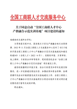2023年3月16日,學校收到全國工商聯(lián)人才交流服務(wù)中心《關(guān)于同意啟動“全國工商聯(lián)人才中心產(chǎn)教融合示范實訓基地”項目建設(shè)的通知》文件,成功入選首批“全國工商聯(lián)人才中心產(chǎn)教融合示范實訓基地”。