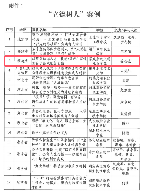 近日,中國(guó)職業(yè)技術(shù)教育學(xué)會(huì)發(fā)布《關(guān)于公布職業(yè)教育“立德樹(shù)人”、解決產(chǎn)業(yè)發(fā)展問(wèn)題、“職教出海”、非遺成果轉(zhuǎn)化案例名單的通知》,我院報(bào)送的《燈塔型航海人才“技能+素養(yǎng)”雙適任育訓(xùn)范式創(chuàng)新實(shí)踐》《古船新造:福船非遺技藝的創(chuàng)造性轉(zhuǎn)化與職業(yè)教育賦能的活態(tài)創(chuàng)新模式》分別入選“立德樹(shù)人”和“非遺成果轉(zhuǎn)化”典型案例。