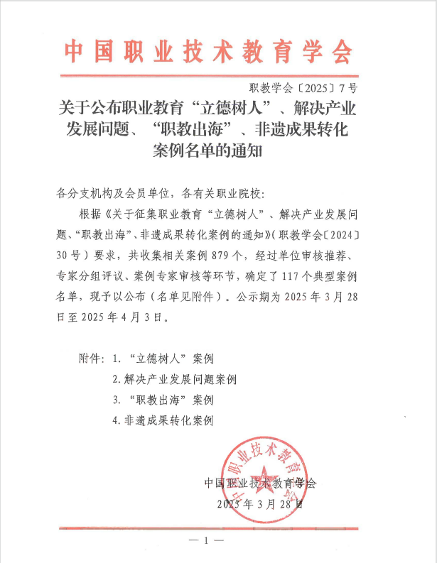 此次案例入選,彰顯了學(xué)院“雙高”建設(shè)在立德樹(shù)人與文化傳承創(chuàng)新領(lǐng)域的成果。未來(lái),學(xué)院將繼續(xù)以“雙高計(jì)劃”為引領(lǐng),深化現(xiàn)代職業(yè)教育體系建設(shè)改革,為區(qū)域經(jīng)濟(jì)發(fā)展和產(chǎn)業(yè)轉(zhuǎn)型升級(jí)提供更有力的支撐。