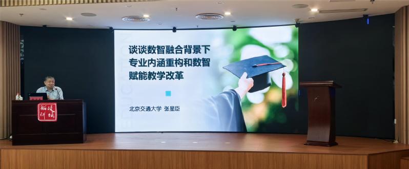 為深入貫徹落實(shí)國(guó)家教育數(shù)字化戰(zhàn)略行動(dòng),探索數(shù)智融合背景下專業(yè)發(fā)展新路徑,5月26日上午,學(xué)院成功舉辦 “談?wù)剶?shù)智融合背景下專業(yè)內(nèi)涵重構(gòu)和數(shù)智賦能教學(xué)改革”專題講座。本次講座邀請(qǐng)到 北京交通大學(xué)原副校長(zhǎng)張星臣擔(dān)任主講嘉賓,學(xué)院領(lǐng)導(dǎo)、各二級(jí)學(xué)院領(lǐng)導(dǎo)、專業(yè)帶頭人、新進(jìn)教師等近100人參加了本次講座。