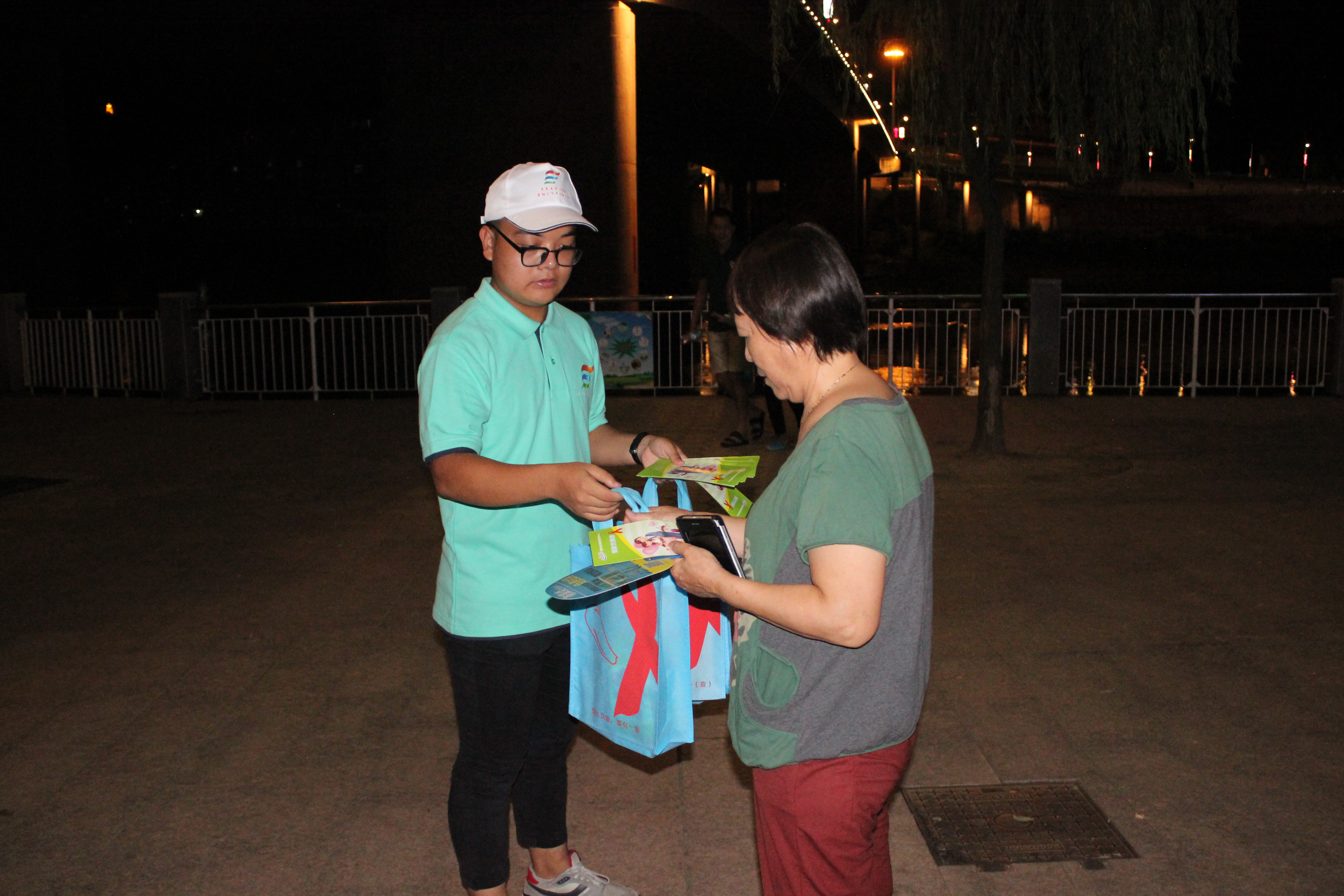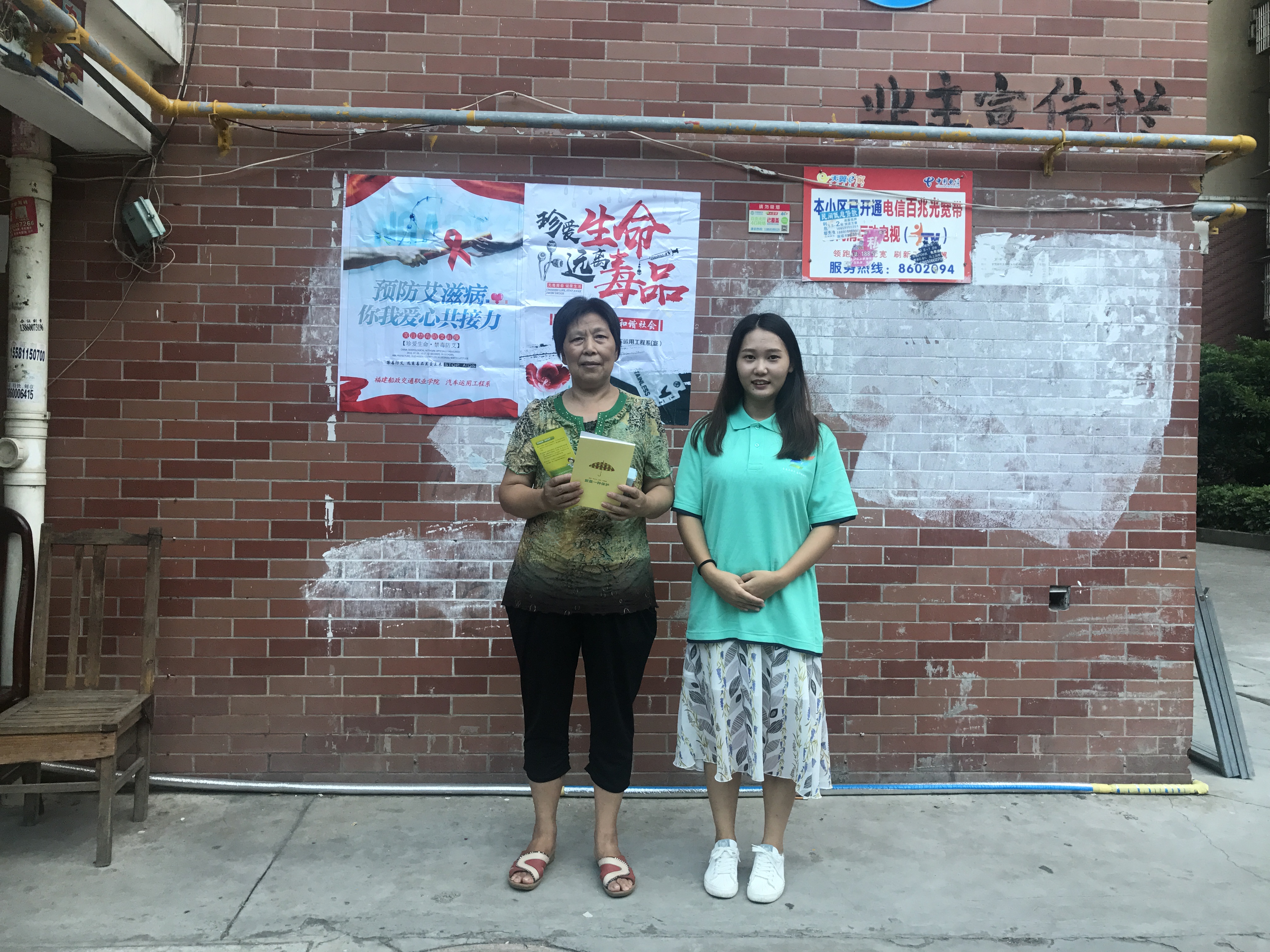 7月9日當(dāng)天并同南平市疾病控制中心的科研室主任和數(shù)位醫(yī)師及我們實(shí)踐隊(duì)領(lǐng)隊(duì)沈曉家老師以及實(shí)踐團(tuán)的師生進(jìn)行多點(diǎn)宣傳。在疾控中心醫(yī)師的防艾知識普及下,我們得知南平市艾滋發(fā)病率多在40歲以上的中老年人,我系宣傳隊(duì)根據(jù)這一特點(diǎn),選擇下午到傍晚在中老年人活動的密集區(qū)的公園、社區(qū)開展禁毒防艾的宣傳活動。