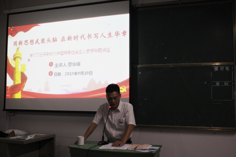 2018年9月19日,在福建船政交通職業(yè)學(xué)院北區(qū)22號樓407教室舉行了“用新思想武裝頭腦 在新時代書寫人生華章”的專題講座。參加報告的有汽車系教工黨員代表、18級各班臨時負(fù)責(zé)人以及優(yōu)秀學(xué)生代表。報告由汽車運用工程系黨總支書記蔡華錦主持。