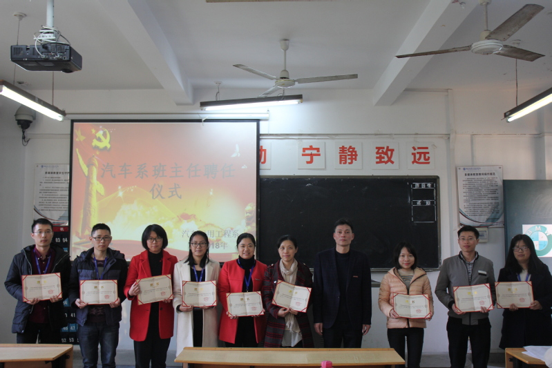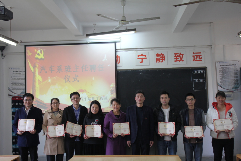2018年12月26日,福建船政交通職業(yè)學(xué)院汽車運(yùn)用工程系“2018級(jí)新生班級(jí)班主任聘任儀式”在北區(qū)22號(hào)樓汽西203教室隆重舉行。汽車運(yùn)用工程系黨總支書(shū)記蔡華錦主持儀式,為今年新當(dāng)選的18位班主任頒發(fā)聘書(shū),并一同合影留念。
