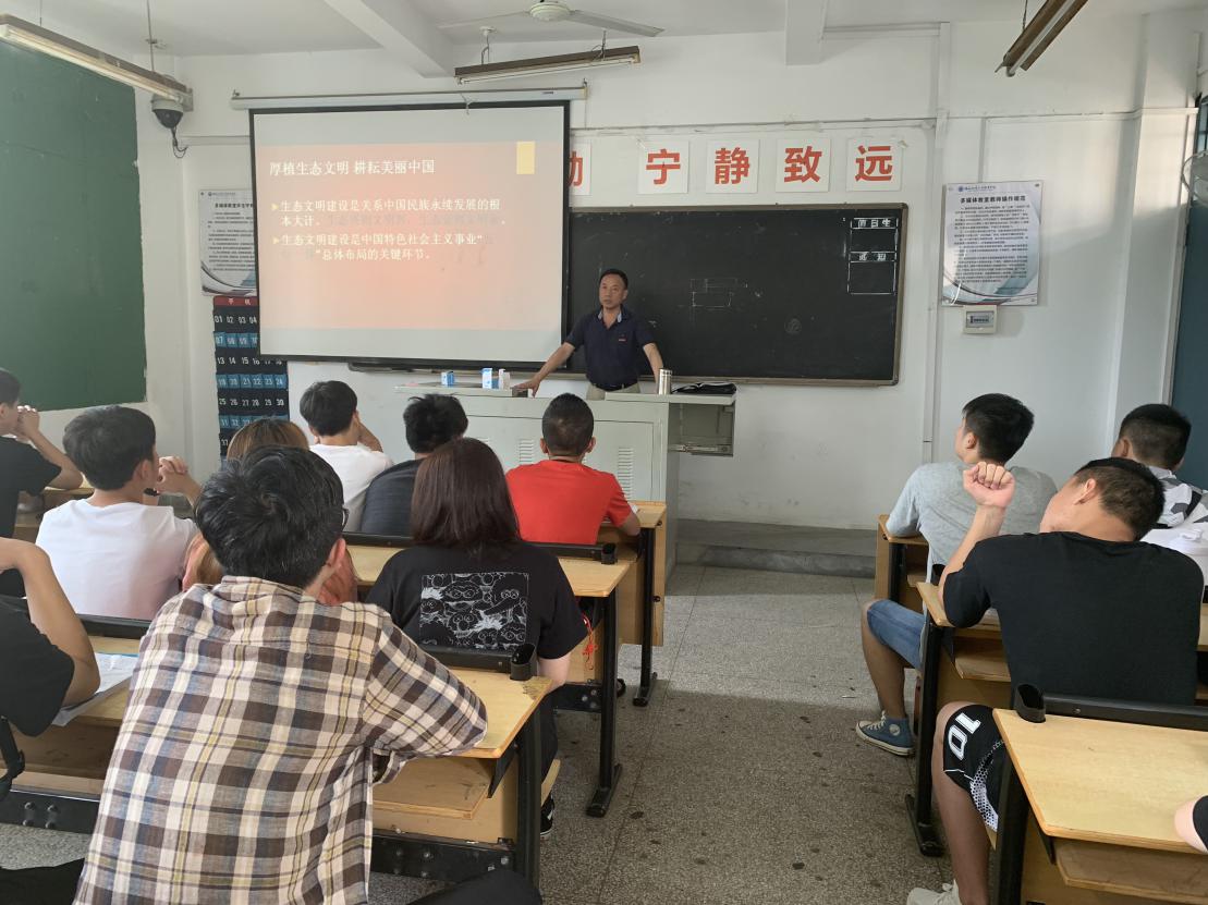 張榮貴主任還講述了我們不能把子孫的“飯”都吃掉,巧妙生動得詮釋了“綠水青山就是金山銀山”的理念。倡導(dǎo)同學(xué)們應(yīng)堅持節(jié)約資源和保護(hù)環(huán)境的基本原則,致力于創(chuàng)造更好的生態(tài)環(huán)境。