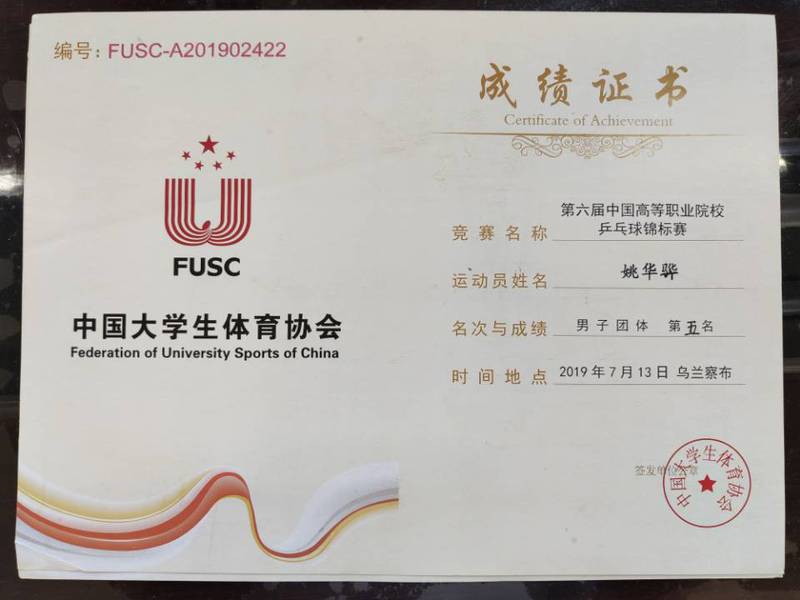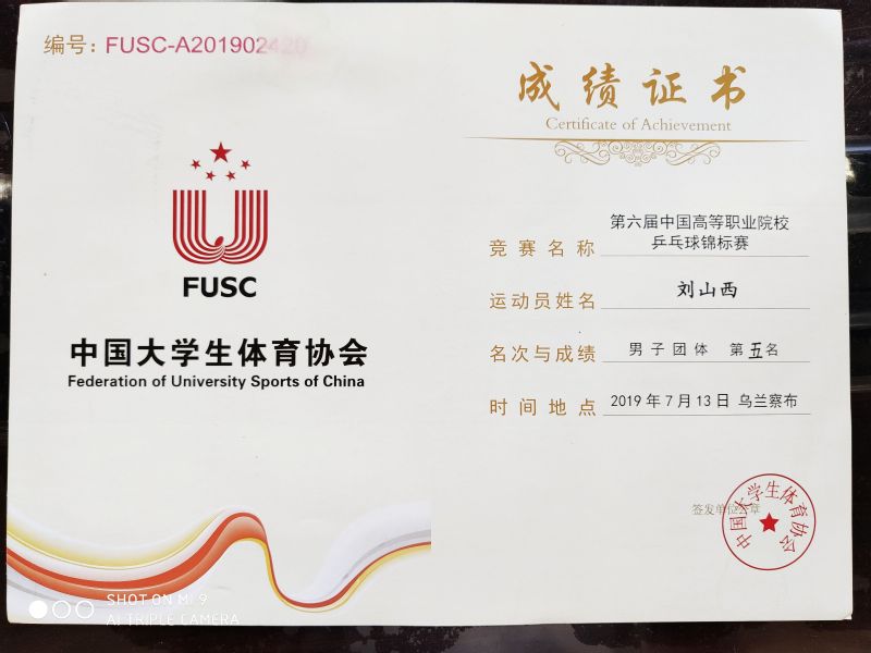 2019年7月10日至13日,我系2018級汽車營銷與服務(wù)1班學生姚華驊、2017級汽車運用與維修技術(shù)1班劉山西等同學,在內(nèi)蒙古烏蘭察布職業(yè)學院舉行的第六屆中國高職院校乒乓球錦標賽中,通過與全國33所院校近180名運動員的激烈角逐,最終獲得全國男子團體第五名的歷史最好成績。