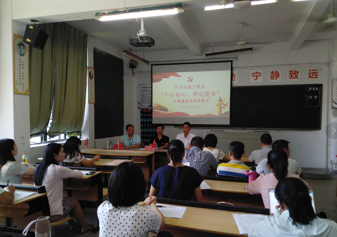 為深入貫徹落實(shí)習(xí)近平總書(shū)記關(guān)于“不忘初心、牢記使命”主題教育的重要講話和重要批示精神及學(xué)院黨委的部署要求,9月20日下午,汽車(chē)運(yùn)用工程系黨總支召開(kāi)“不忘初心、牢記使命”主題教育動(dòng)員部署會(huì),汽車(chē)運(yùn)用工程系全體黨員參加了會(huì)議,學(xué)院巡回指導(dǎo)小組二組組長(zhǎng)王心金及指導(dǎo)組成員到會(huì)指導(dǎo)。