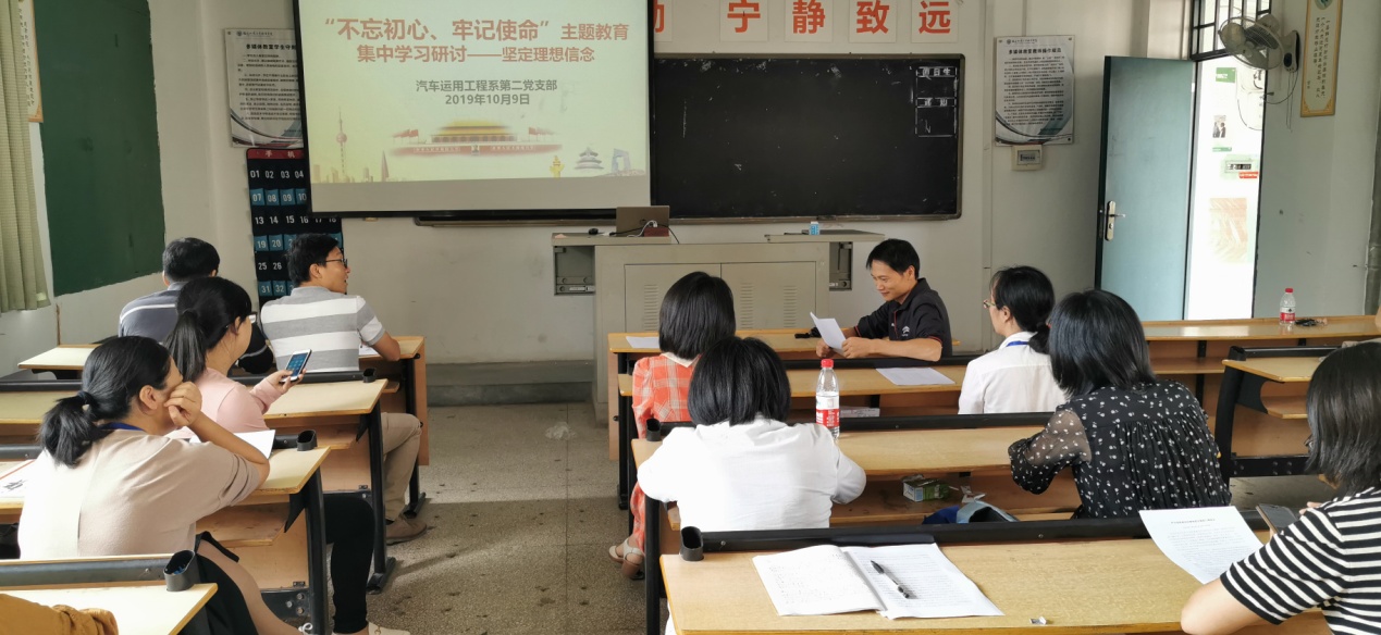 據(jù)系總支“不忘初心、牢記使命”主題教育方案和學(xué)習(xí)研討計(jì)劃,2019年10月9日下午汽車運(yùn)用工程系第二黨支部在汽西203教室召開支部會(huì)議,分別以“堅(jiān)定理想信念”為主題,開展了專題研討學(xué)習(xí)活動(dòng)?;顒?dòng)由支部副書記何建主持,汽車系第二黨支部全體黨員同志參加了活動(dòng)。