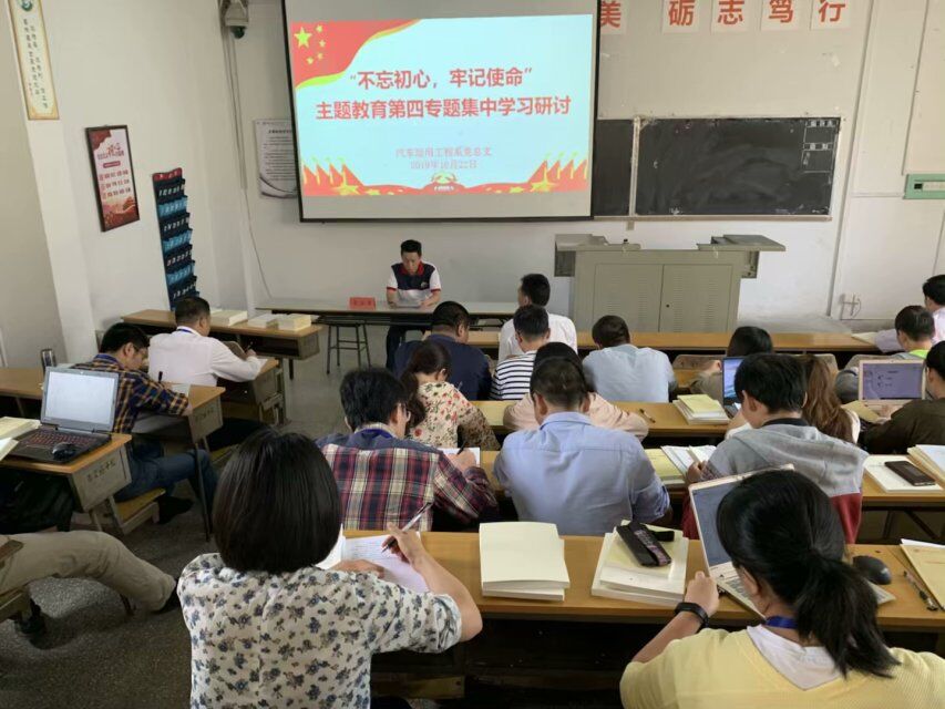 按照汽車運用工程系黨總支“不忘初心、牢記使命”主題教育學(xué)習(xí)研討方案安排,1022日下午,系黨總支召開主題教育第四專題集中學(xué)習(xí)研討會。系部全體教職工黨員參加了會議。