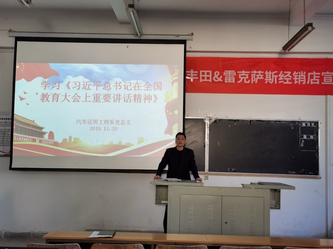 為深入宣傳貫徹全國教育工作會議精神,汽車運(yùn)用工程系于2019年11月20日下午,在第二階梯教室舉行全體教職工學(xué)習(xí)大會,組織學(xué)習(xí)貫徹習(xí)近平總書記在全國教育大會上的重要講話內(nèi)容。會議由汽車運(yùn)用工程系黨總支蔡華錦書記主持。