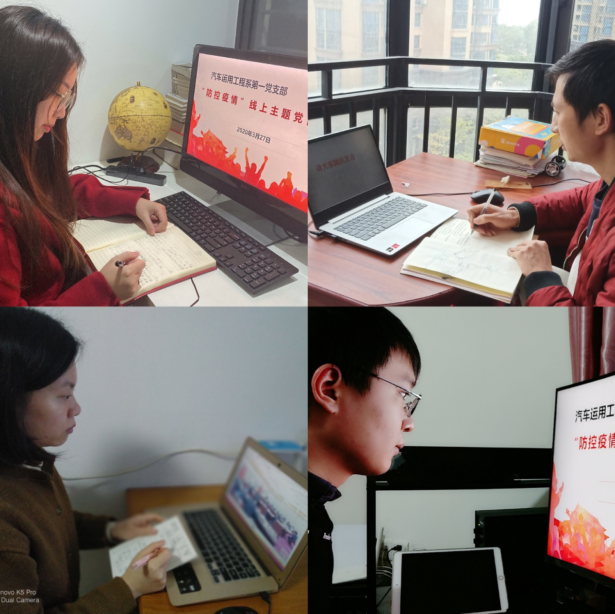 2020327日,根據(jù)學(xué)院黨委工作部的通知要求,汽車運用工程系第一黨支部三月份的三會一課和主題黨日活動,首次采取線上支部學(xué)習(xí)的形式開展。第一黨支部書記黃佳瑩采用QQ同屏播放的形式,組織全體黨員老師學(xué)習(xí)觀看中央在防抗疫情工作中的部署講話視頻以及《黨委(黨組)落實全面從嚴(yán)治黨主體責(zé)任規(guī)定》內(nèi)容,進(jìn)一步深入學(xué)習(xí)領(lǐng)會習(xí)近平總書記在中共中央政治局常務(wù)委員會上關(guān)于疫情防控工作的重要講話精神。